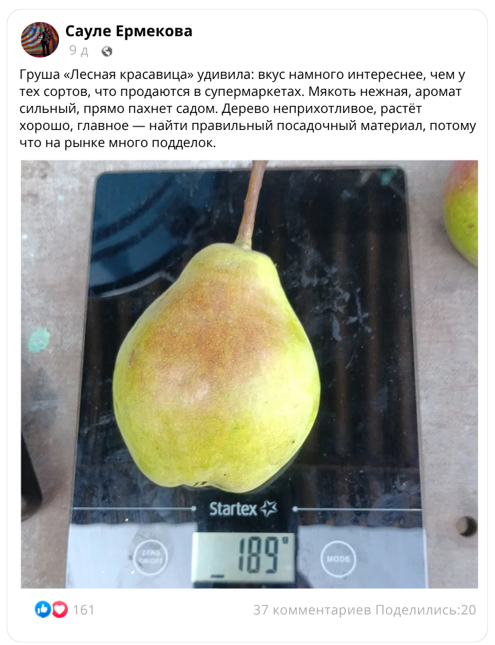 | МЕВАЛАРНИНГ ҲАЖМИ ВА ВАЗНИ | 120-200 грамм, баъзи мевалар 250 граммгача |